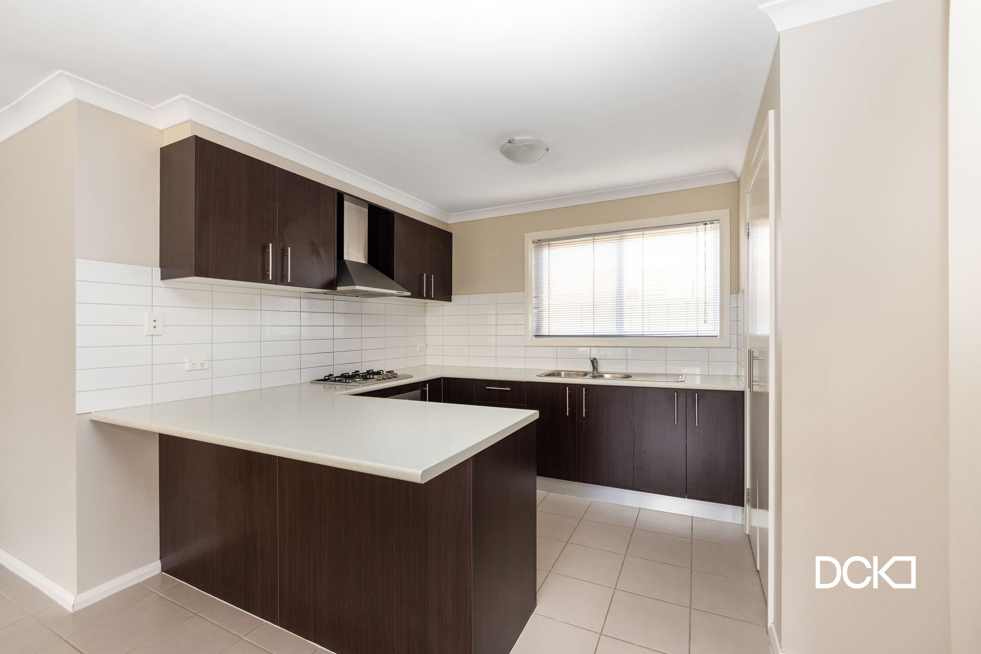 The kitchen is well-appointed with a gas stovetop, electric oven, dishwasher, pantry, and ample cupboard space. The carpeted dining/family room provides direct access to the outdoors.