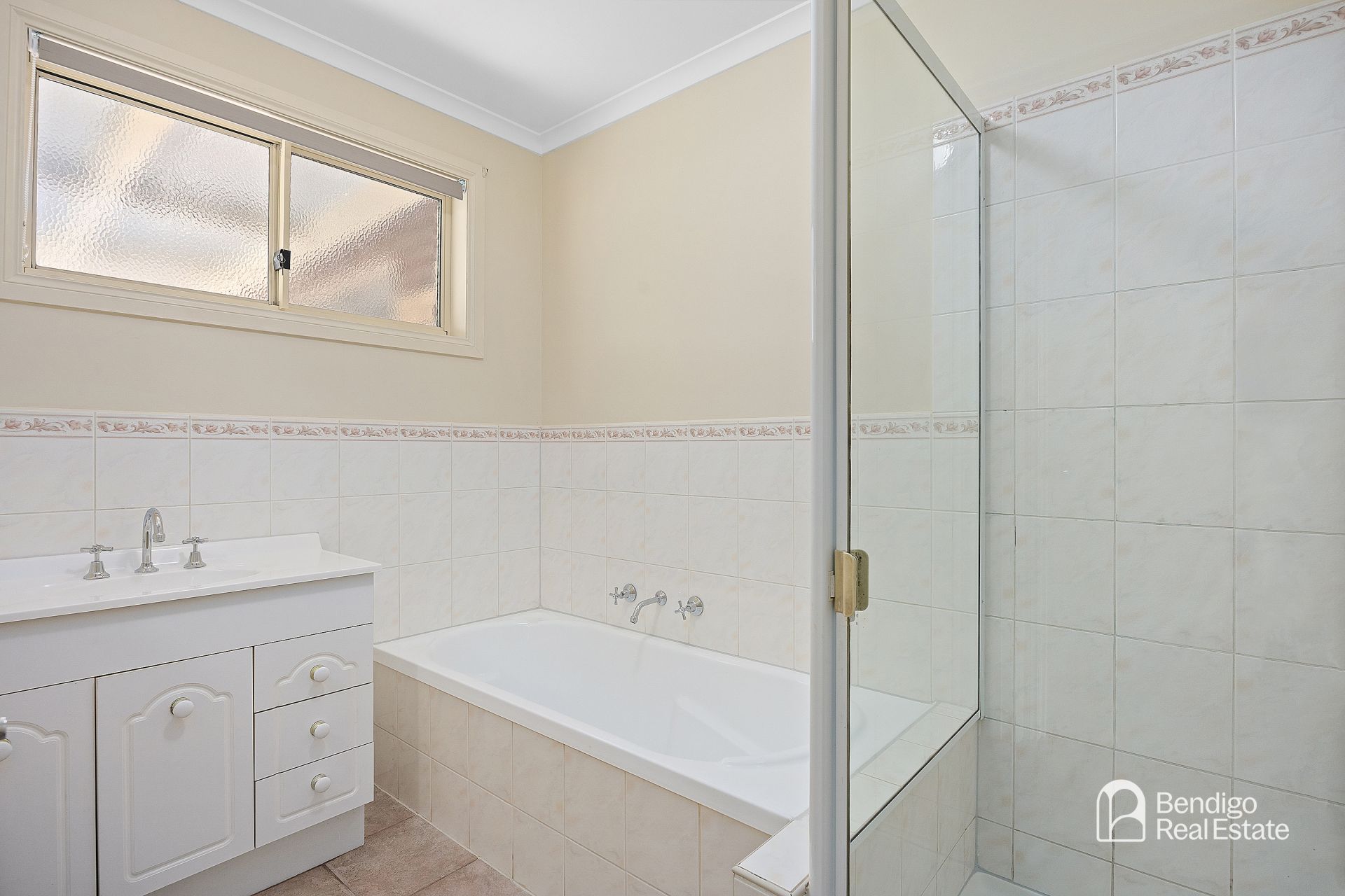 The bathroom comprises of bath, shower and vanity as well as separate toilet.