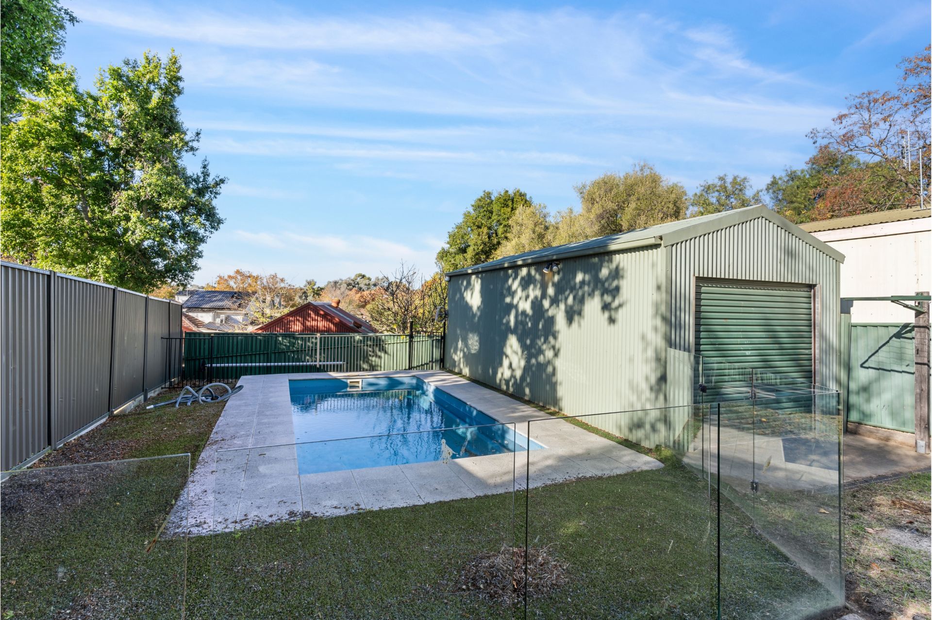 Ducted heating and split systems ensure year-round comfort in every season. The backyard provides ample space for relaxation and entertaining, complete with a swimming pool and a shed with convenient access from the front of the property.