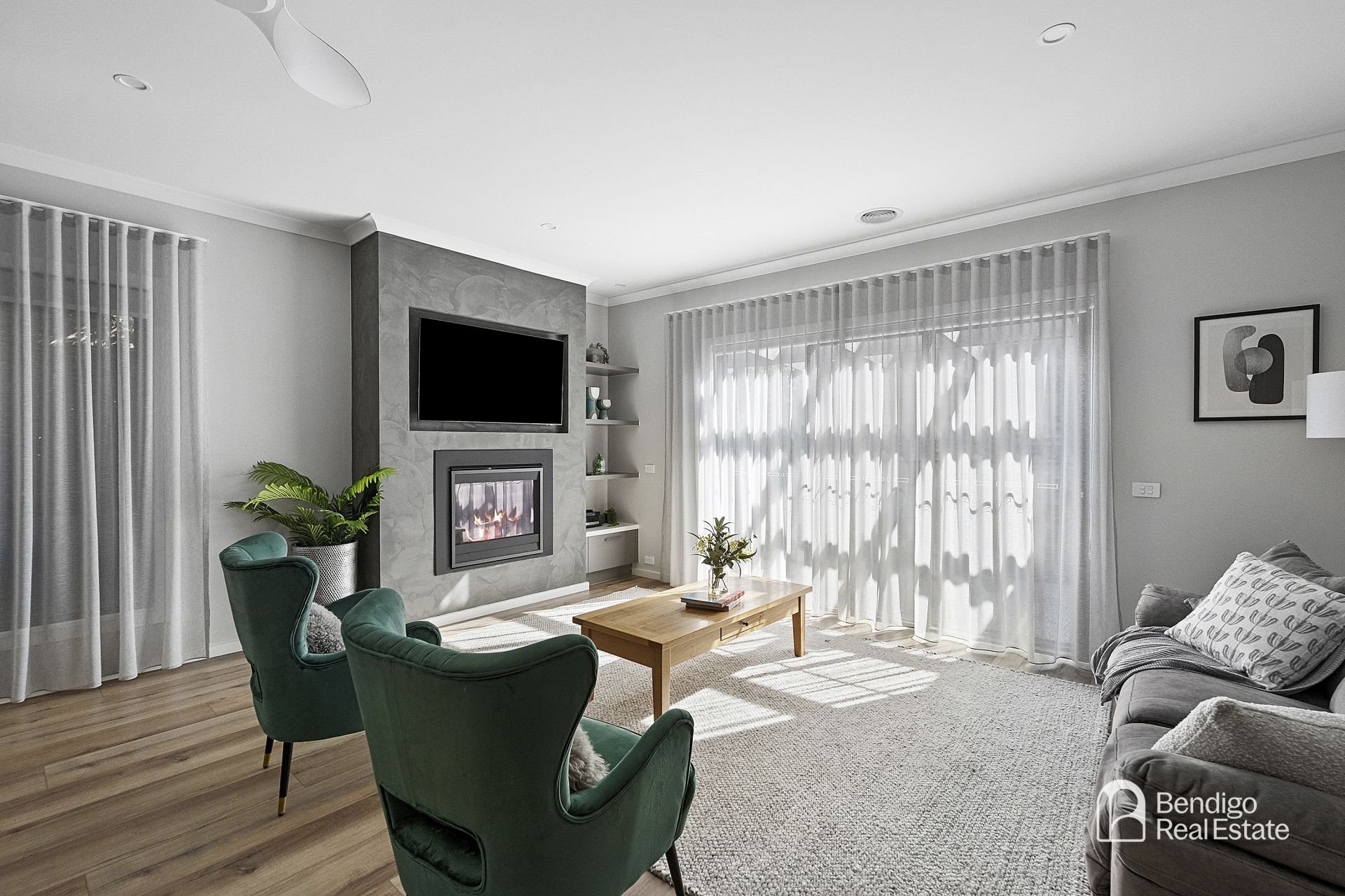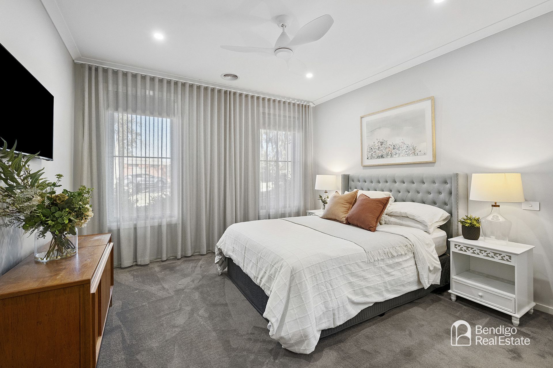 • Gorgeous full-length sheer curtains and roller blinds.