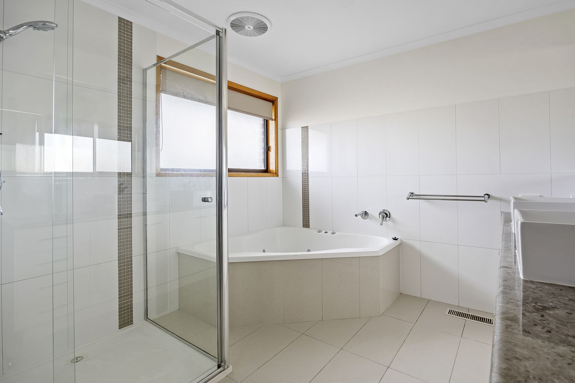 There are four bedrooms; a private main suite with a walk-in-robe, separate toilet and ensuite with shower, corner spa bath and dual vanity.