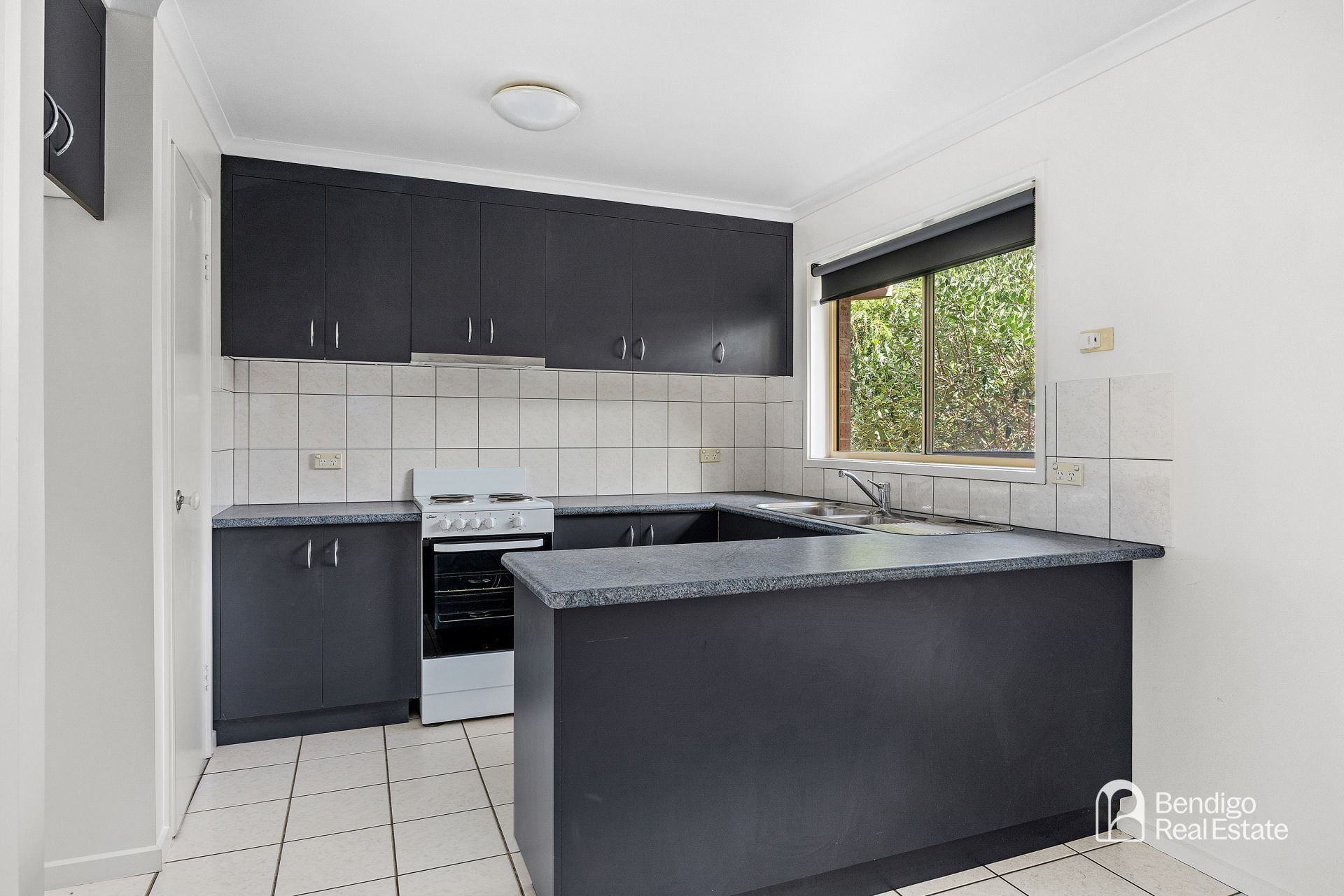 The kitchen is equipped with electric cooking and flows through to the living area, creating a functional layout for everyday living.