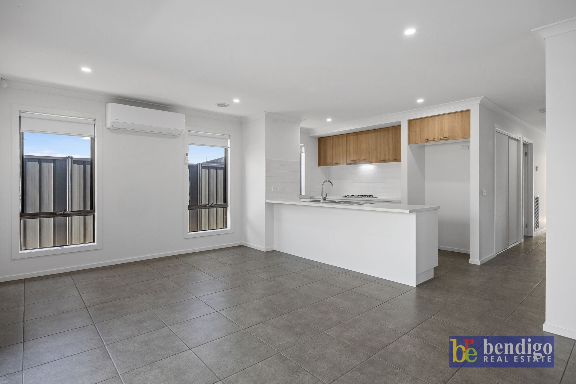 The open-plan kitchen seamlessly connects to the dining and living area, creating a central hub for family life. A 4-piece bathroom with a separate shower and bathtub complements the practical layout, and ducted heating and split system for year-round comfort.