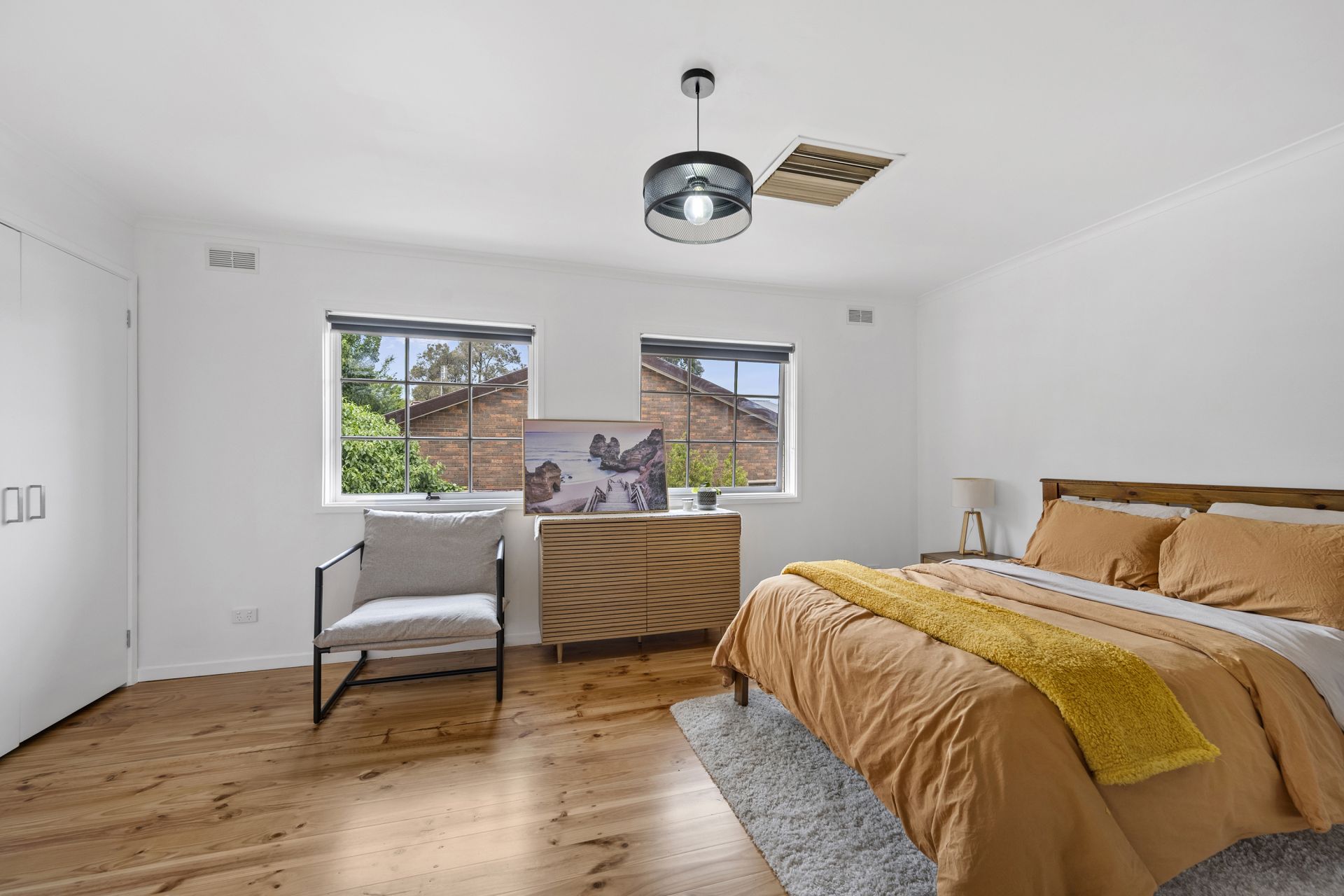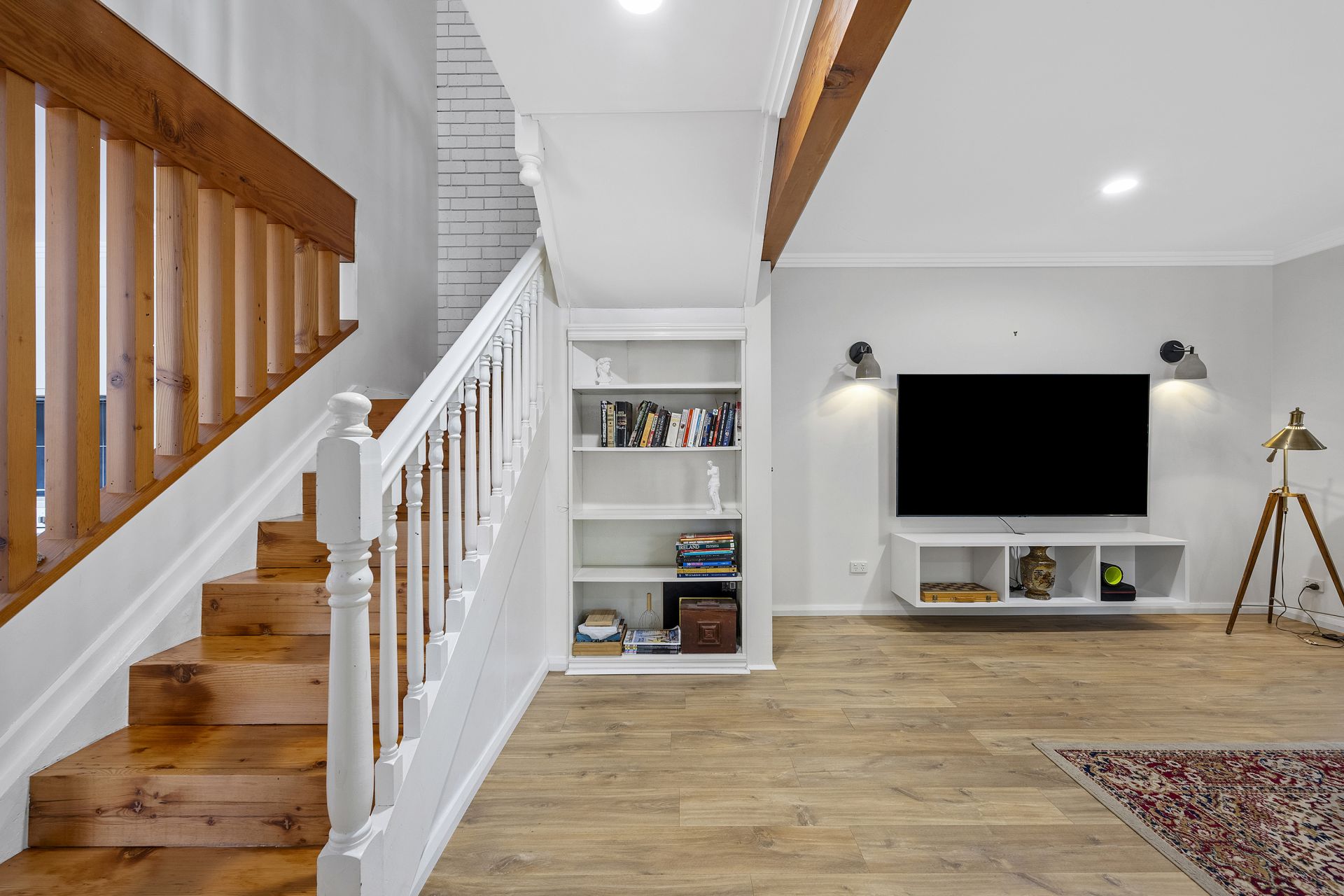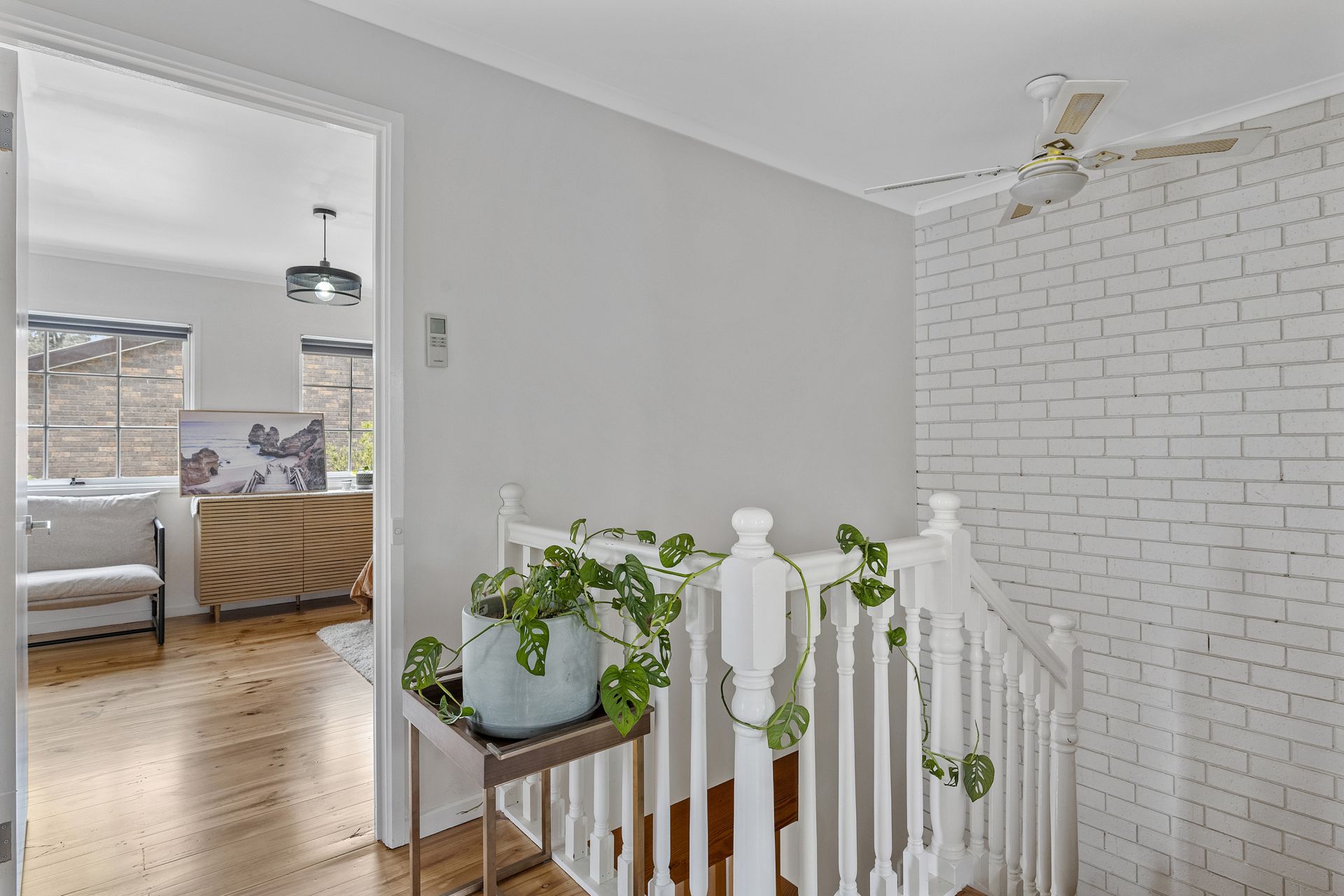 Upstairs, you’ll find three bedrooms with warm timber flooring and a stylish central bathroom, designed for both practicality and flair. Character features such as a striking staircase, colonial-style windows, and thoughtfully designed interiors add to the home’s charm.