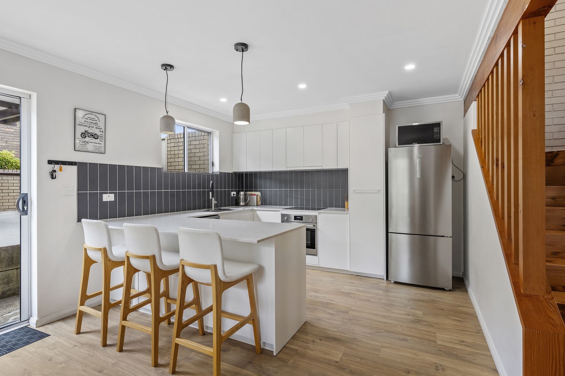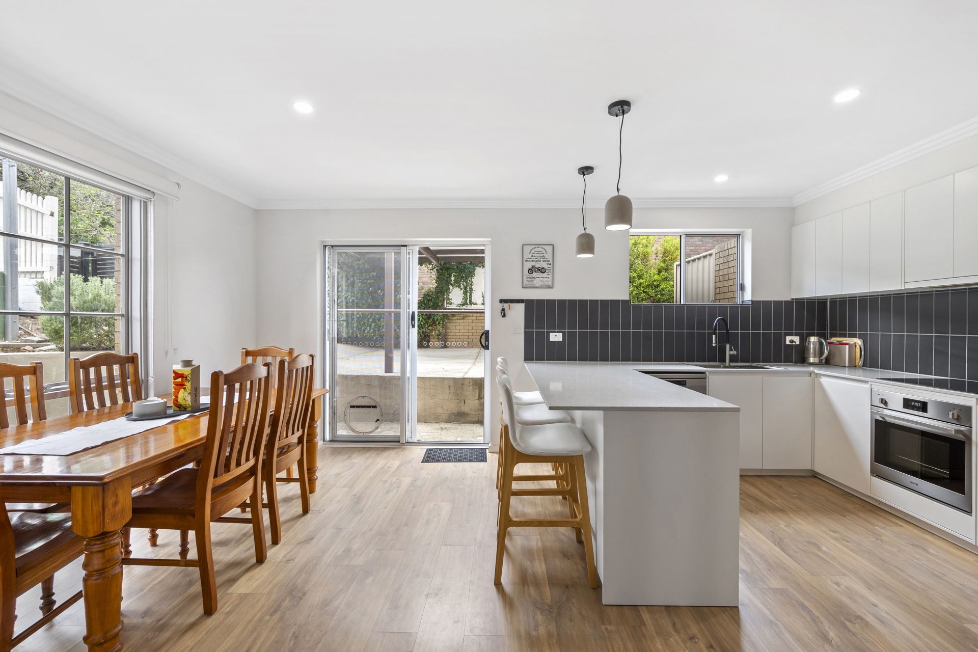 Offering a blend of style and functionality, this beautifully presented home delivers comfortable living across two light-filled levels. Downstairs showcases an open-plan living and dining zone, anchored by a bright and modern kitchen complete with stone benchtops, a 900mm stainless steel oven, and a welcoming breakfast bar—perfect for everyday living and entertaining.