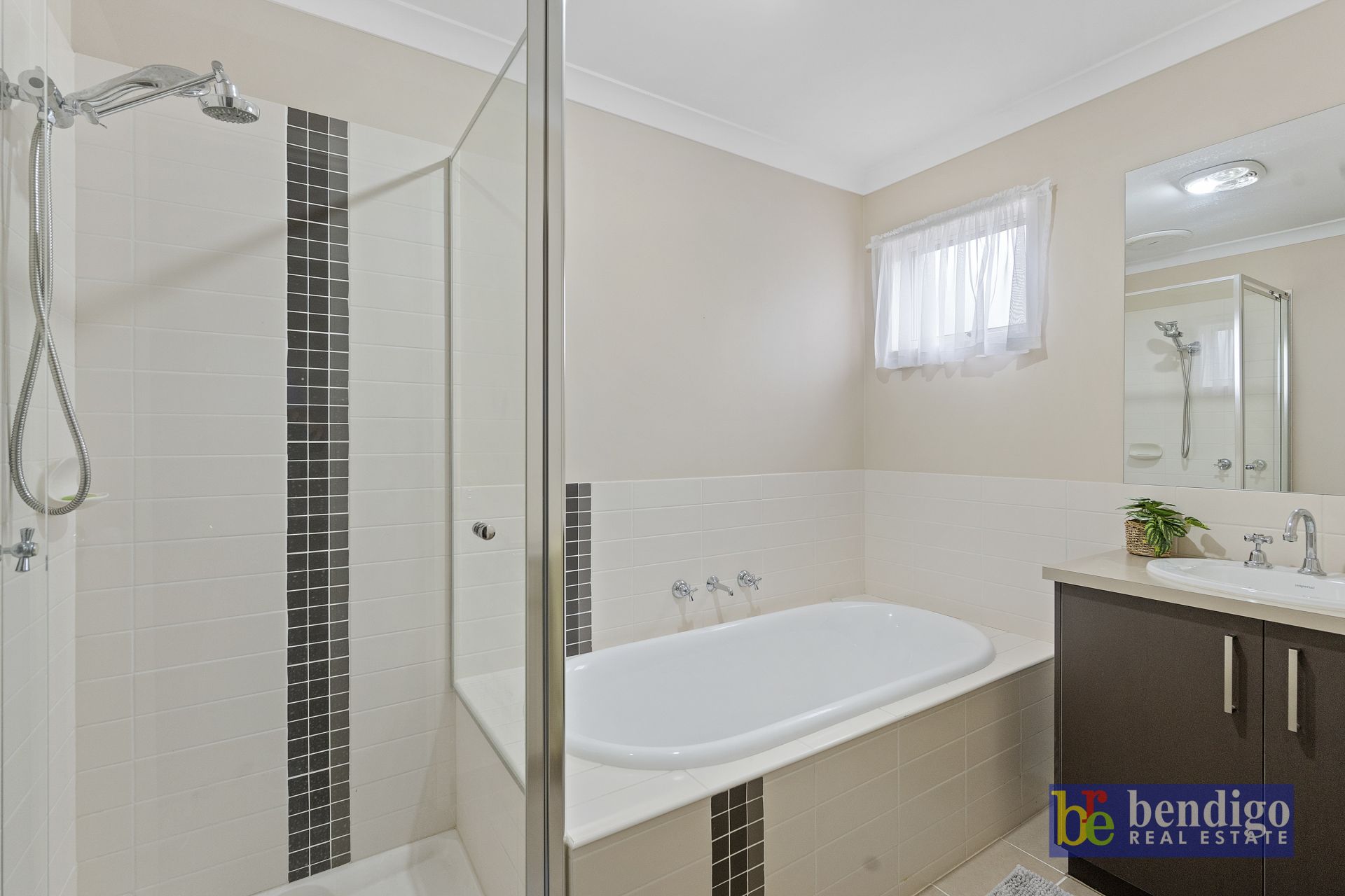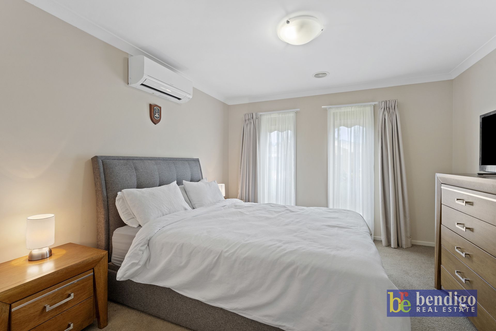 The main has a walk-in-robe, lovely ensuite in soft earthy tones, and split system heating and cooling.