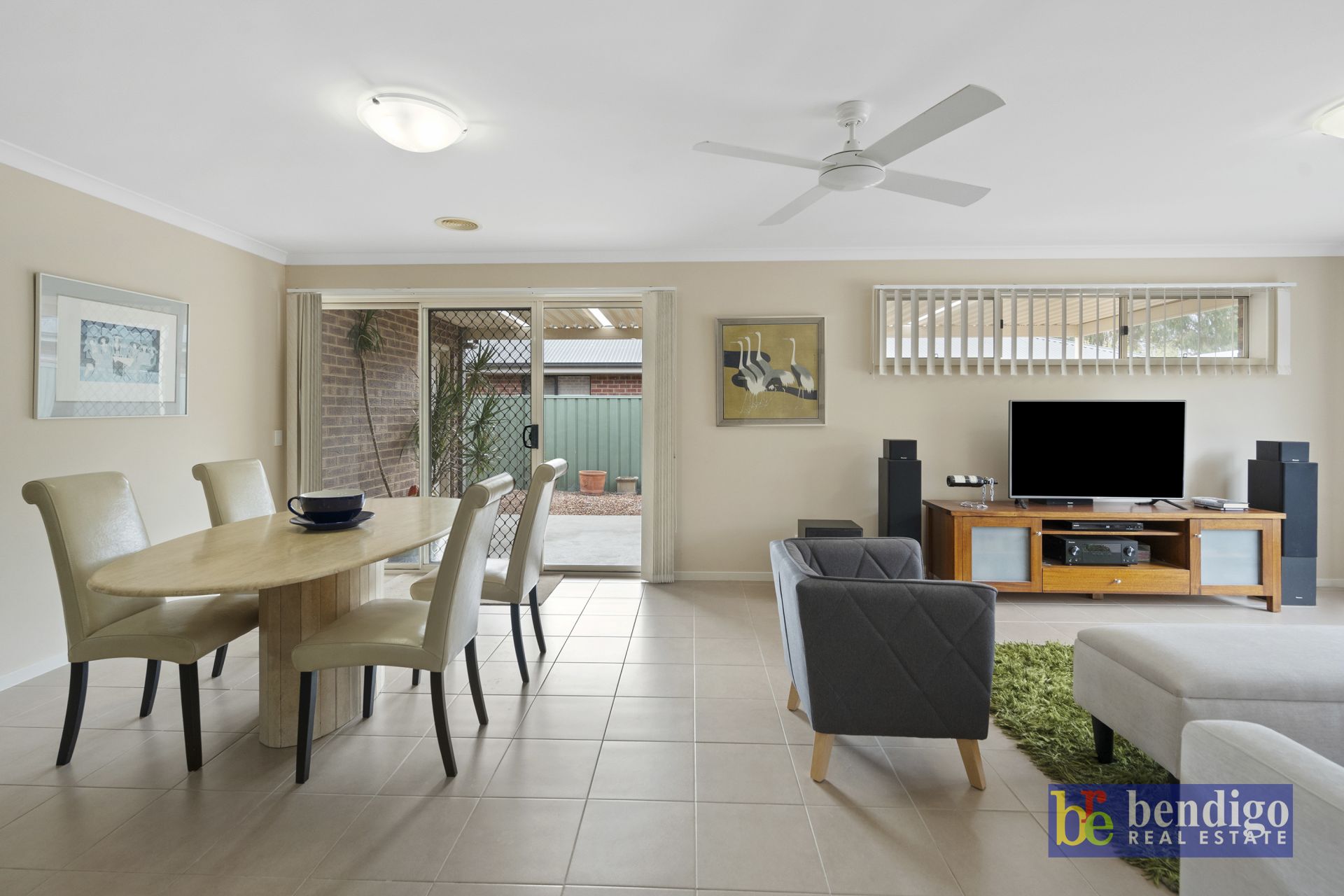 Come together in the tiled open-plan living/dining kitchen area, which features a ceiling fan in addition to the ducted heating and cooling throughout the home.