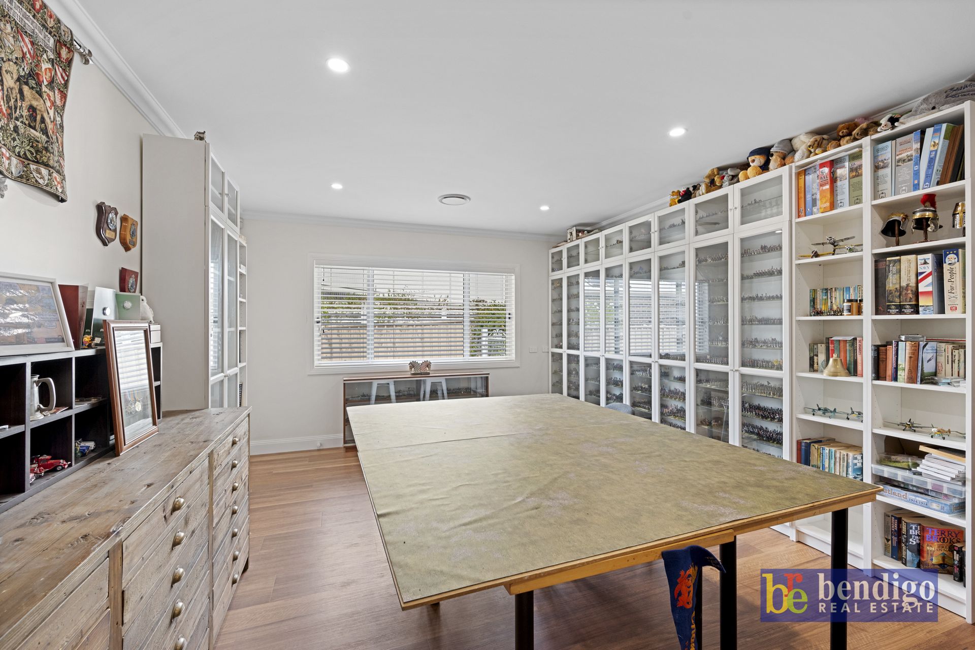 Three spacious living zones make up the heart of the home; a large games room, intimate lounge, and open-plan living/dining/meals/kitchen that’s in a standard of its own. Consider a high, timber-lined ceiling and a full wall of built-in bookshelves and storage cupboards, plus beautiful pendant lights, quality drapes and white timber shutters.