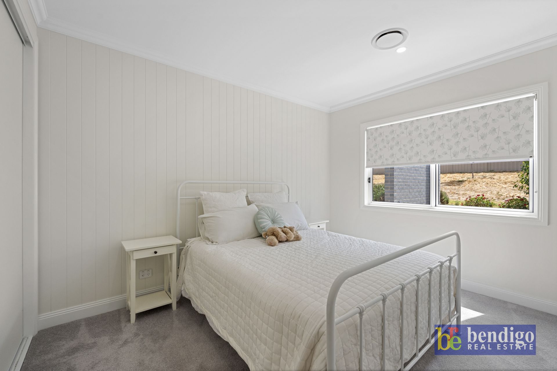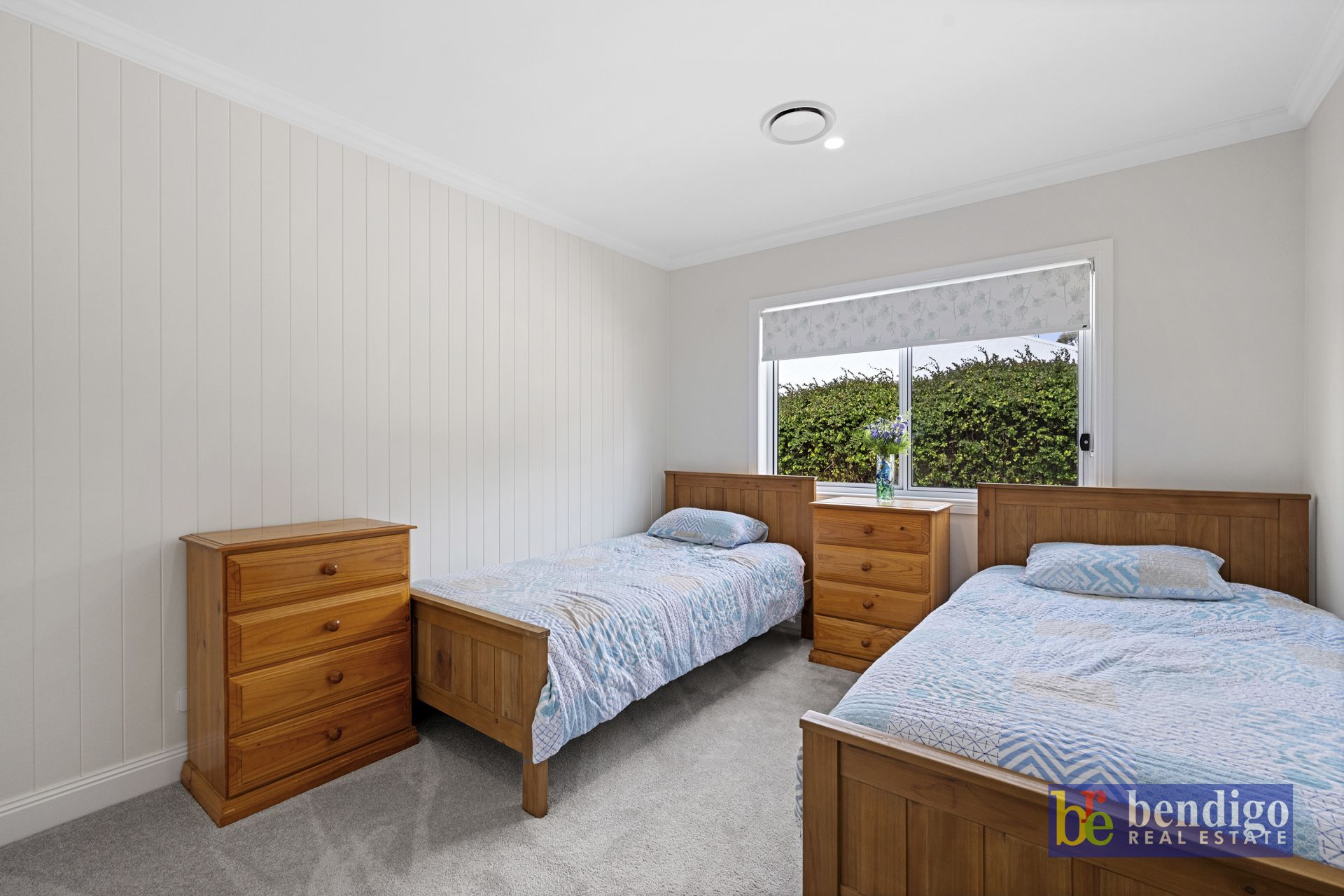 The further three bedrooms are at the back of the home. Each has a built-in-robe, patterned blind and shiplap timber feature wall. The family bathroom is a standout, with its separate powder room, wide shower and deep bath, both with marble herringbone tiled niches.