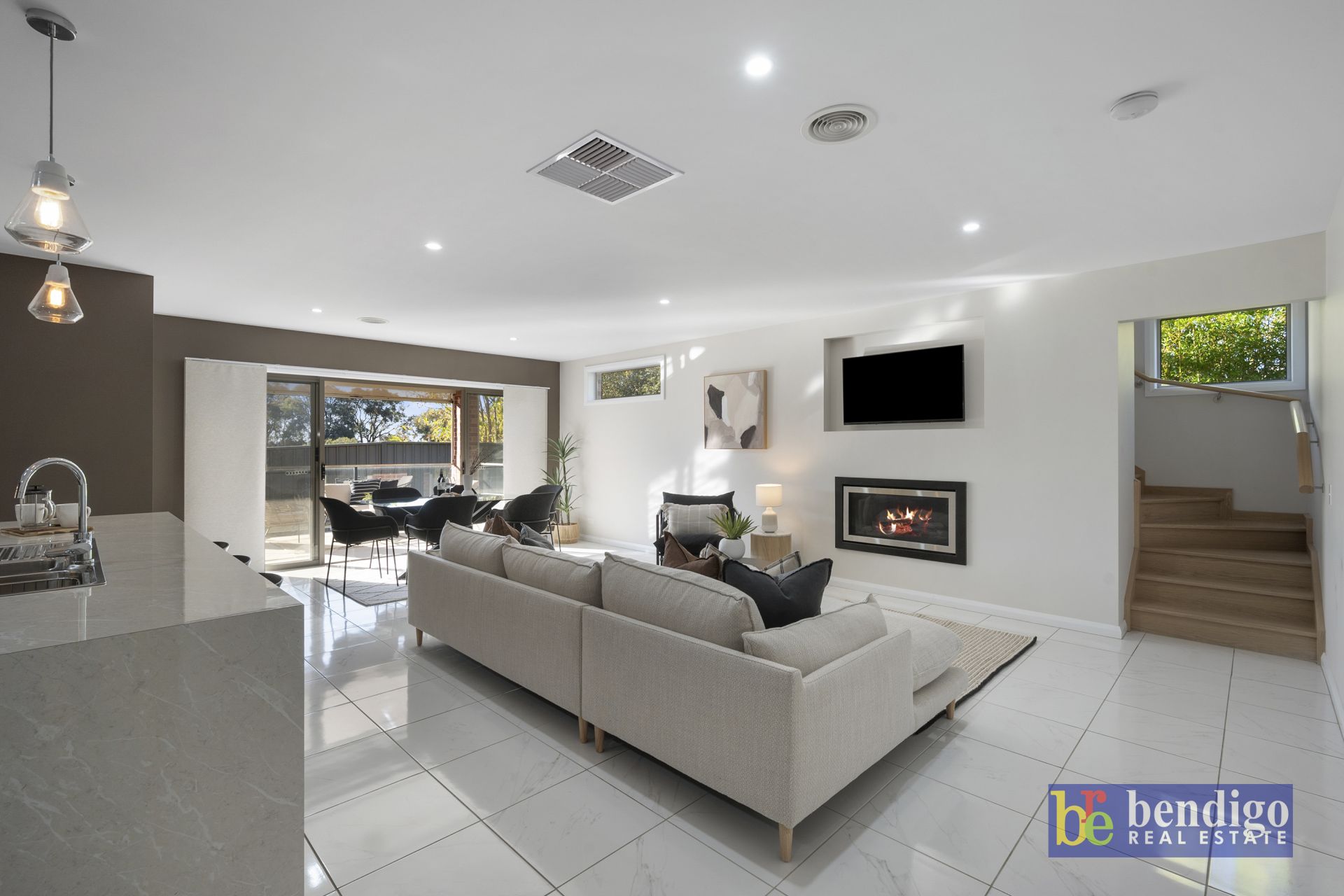 Inside, you’ll find three separate living zones, including a formal lounge, an open plan family area warmed by a gas-log fire, as well as a dedicated rumpus or home theatre upstairs, featuring a projector, movie screen and blackout blinds, perfect for cozy nights in. (Home Theatre equipment included)