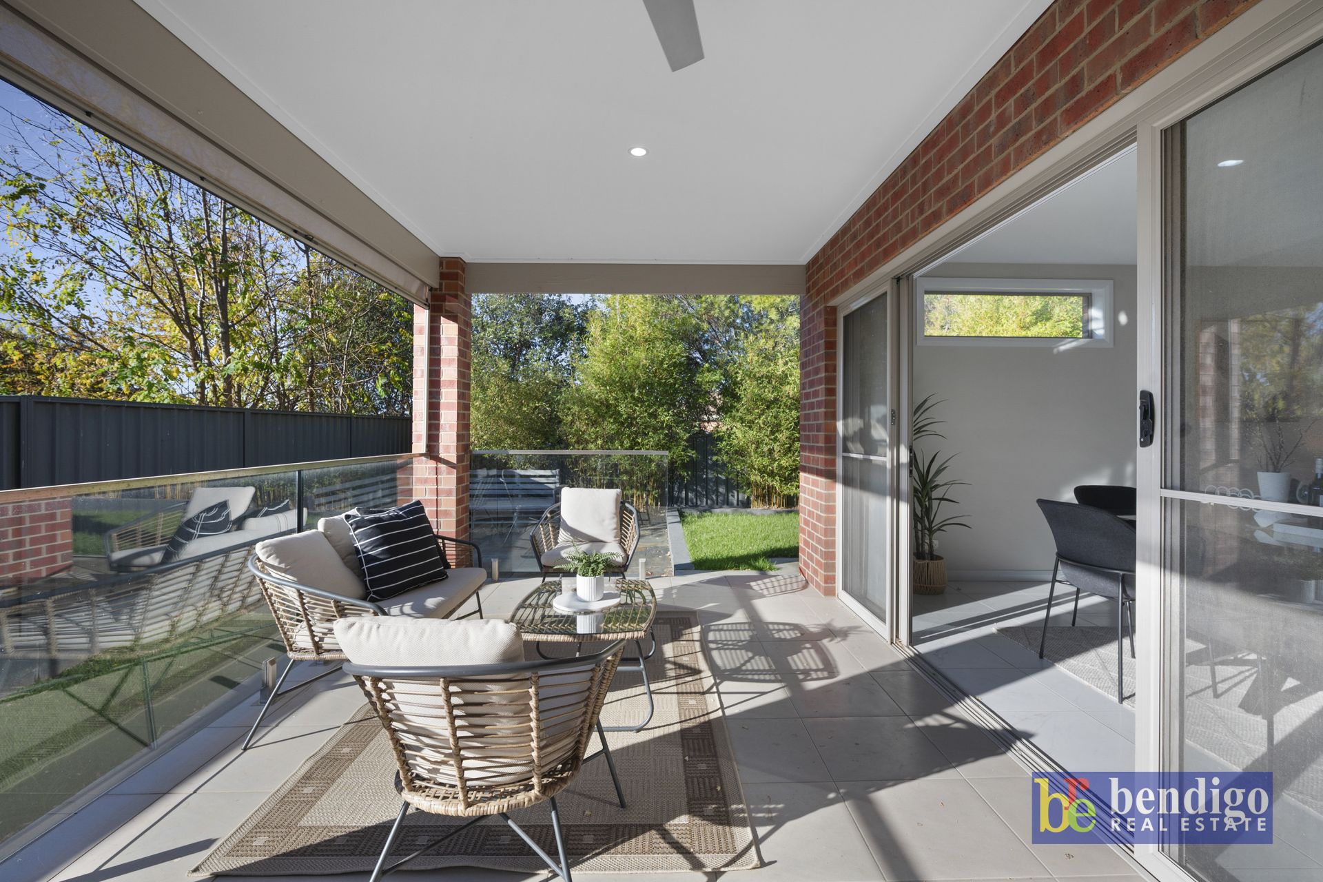 Outdoors, the elevated north facing patio comes complete with a ceiling fan overhead, glass balustrade and block out blinds, creating an ideal setting for entertaining or relaxing.