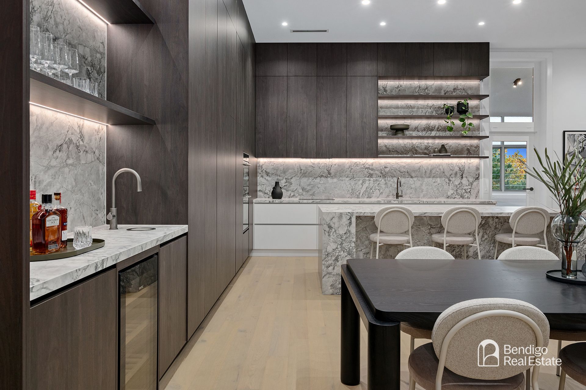 Built-in joinery with sleek porcelain surfaces result in a seamless, contemporary design throughout. The kitchen is outstanding. It features Bosch induction hotplates, wall oven and microwave, an integrated dishwasher, fridge, freezer, bar fridge and appliance cupboard. The Zip tap with instantaneous boiling and chilled water is a brilliant addition, and the separate wine fridge and mini bar, with just a hint of glitz, will impress.
