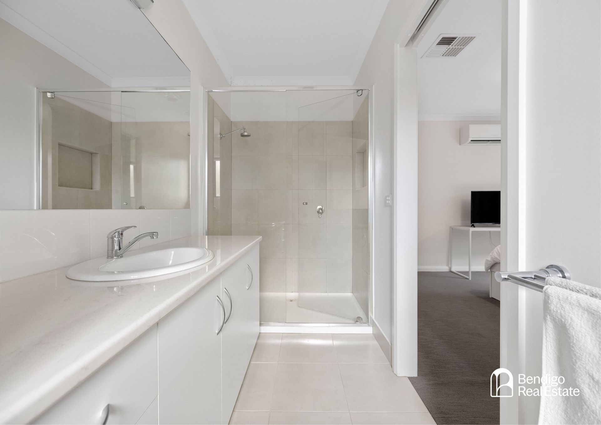 The master suite comes complete with a large walk-in robe and ensuite including oversized shower and modern vanity. The two additional bedrooms are spacious, each with built-in robes, providing ample storage and comfort for family members or guests.