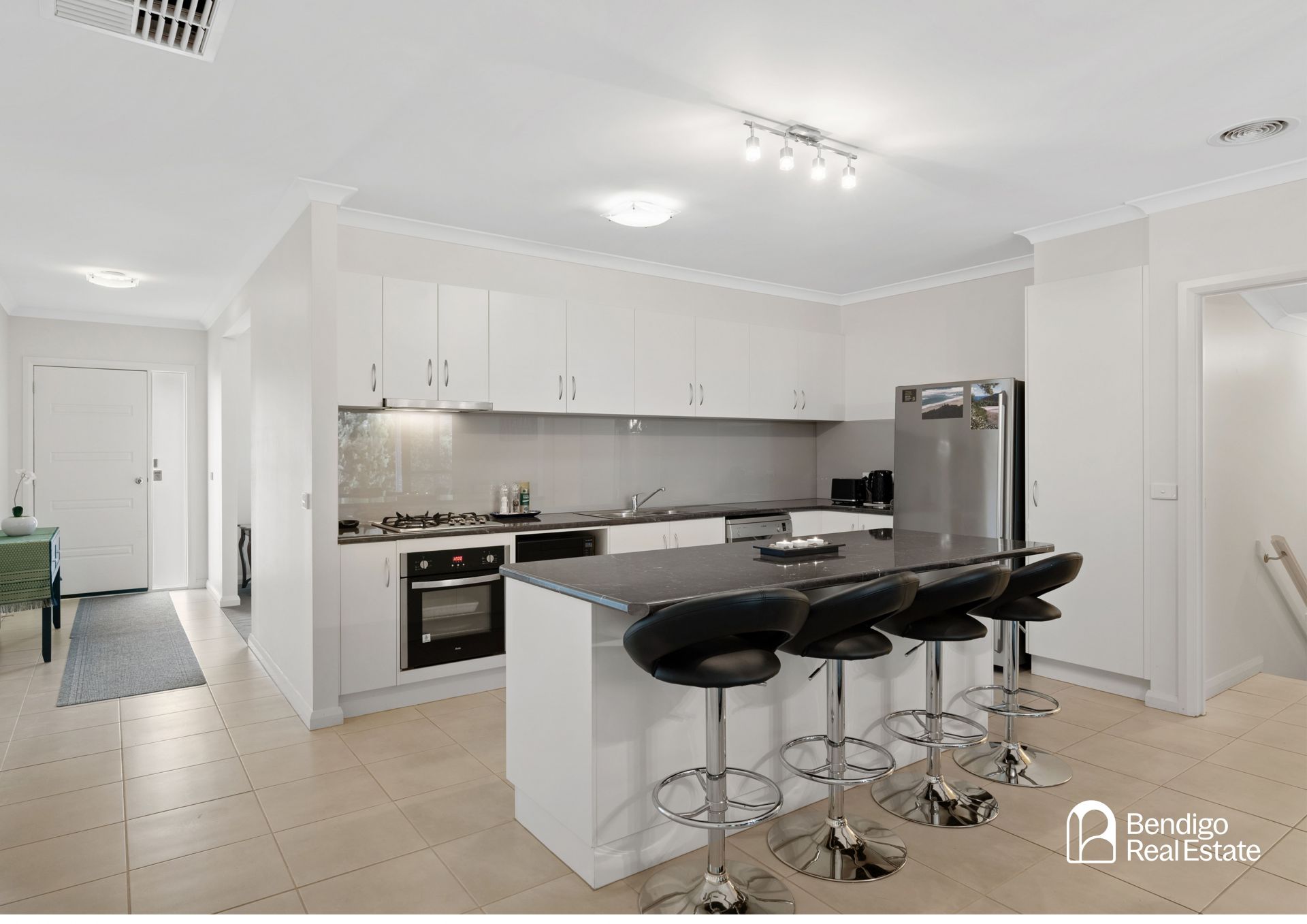 The split-level design places the garage and laundry on the lower level, maximizing space and practicality, while the upper level features a light-filled open-plan kitchen, dining and living area that flows seamlessly to the spacious outdoor entertainment area.
